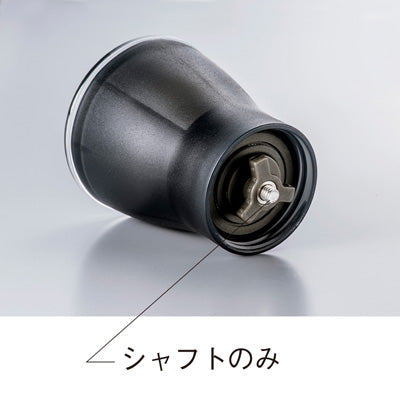 | 材質 | フタ・本体:メタクリル樹脂 ホッパー・グリップ・ハンドルキャップ:ポリプロピレン 臼:セラミック 臼座・調節つまみ:ナイロン シャフト・スプリング・ハンドル:ステンレス |