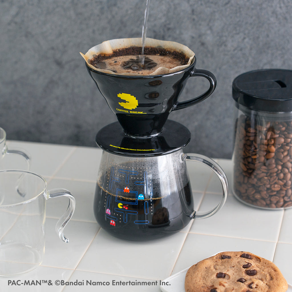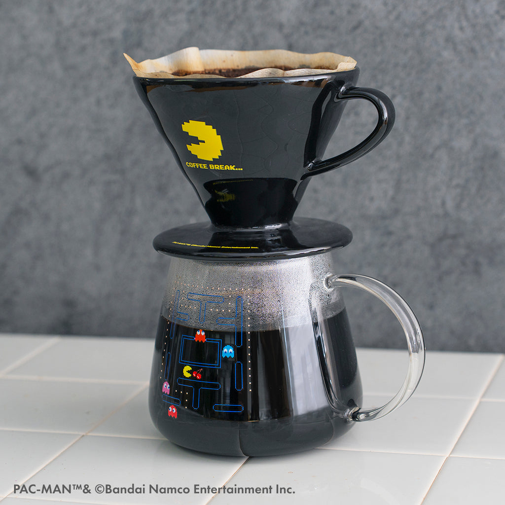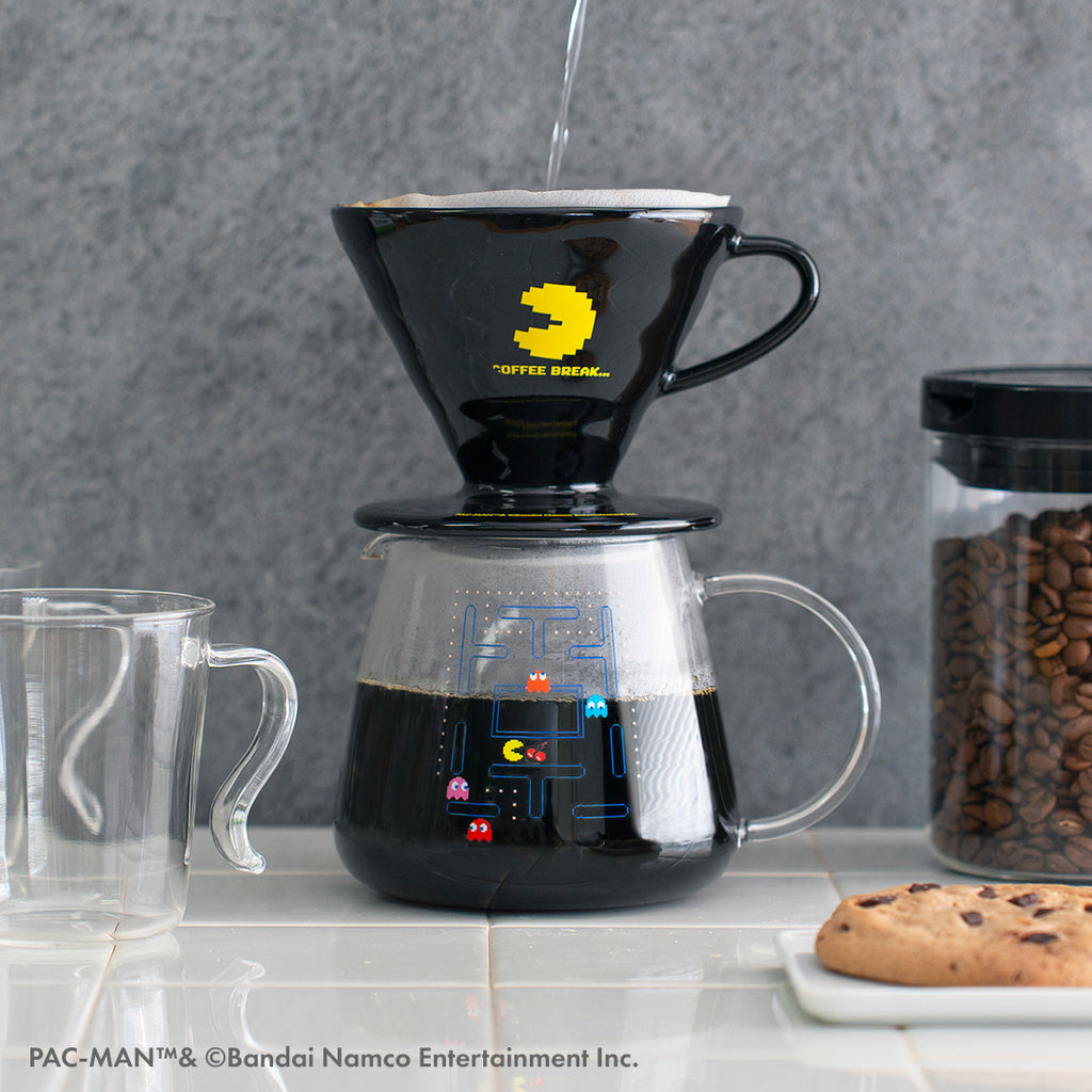 ドリッパーは、黒の磁器に「パックマン」「COFFEE BREAK…」をプリント。
