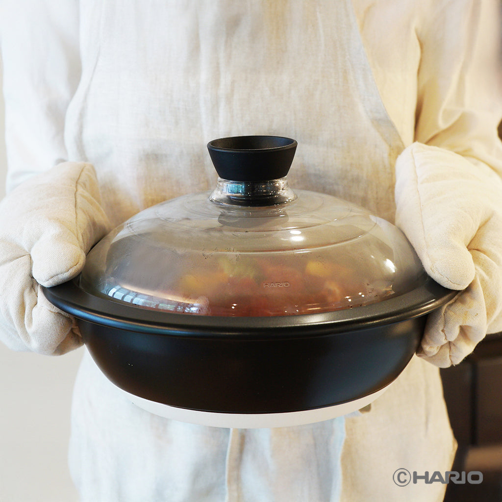 材質 | 鍋身/耐熱陶器、ツマミ/ポリプロピレン、フタガラス/耐熱ガラス |