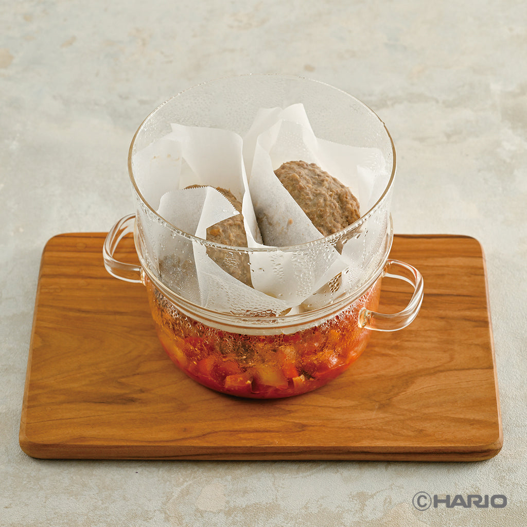 上下ともに耐熱ガラス製の「ガラスのせいろ蒸し器」。