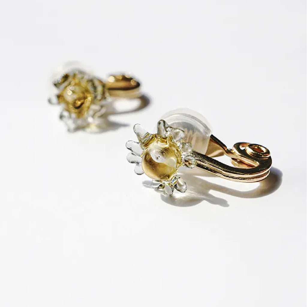 イイダ傘店の繊細で鮮やかなテキスタイルをガラスで表現した、生き生きと輝くガラスのアクセサリー。