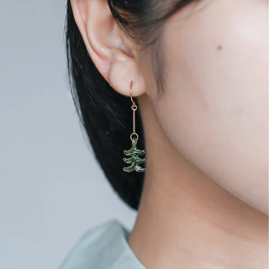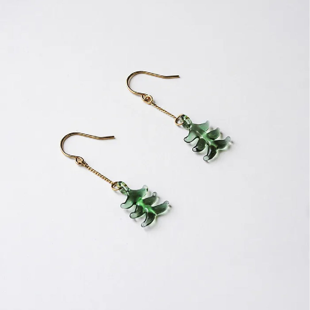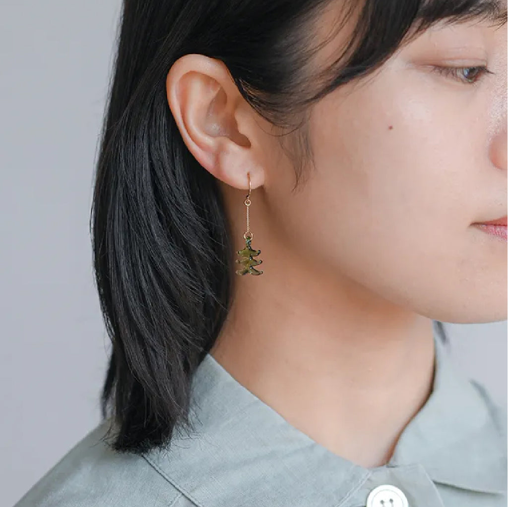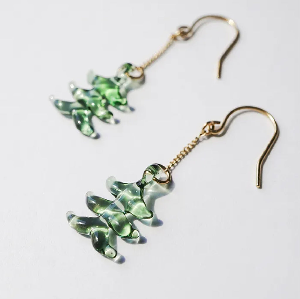 イイダ傘店の繊細で鮮やかなテキスタイルをガラスで表現した、生き生きと輝くガラスのアクセサリー。