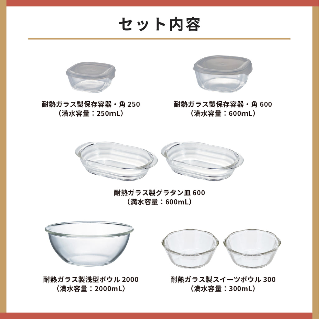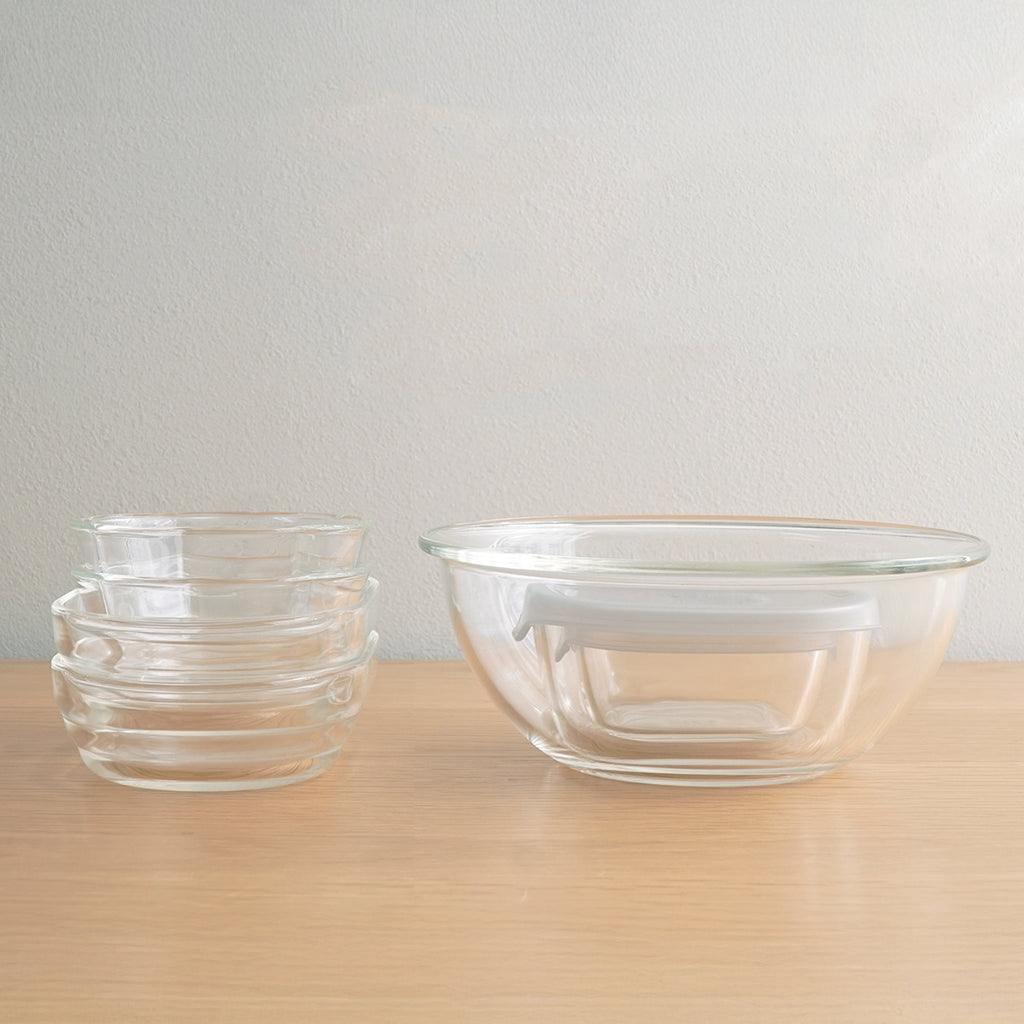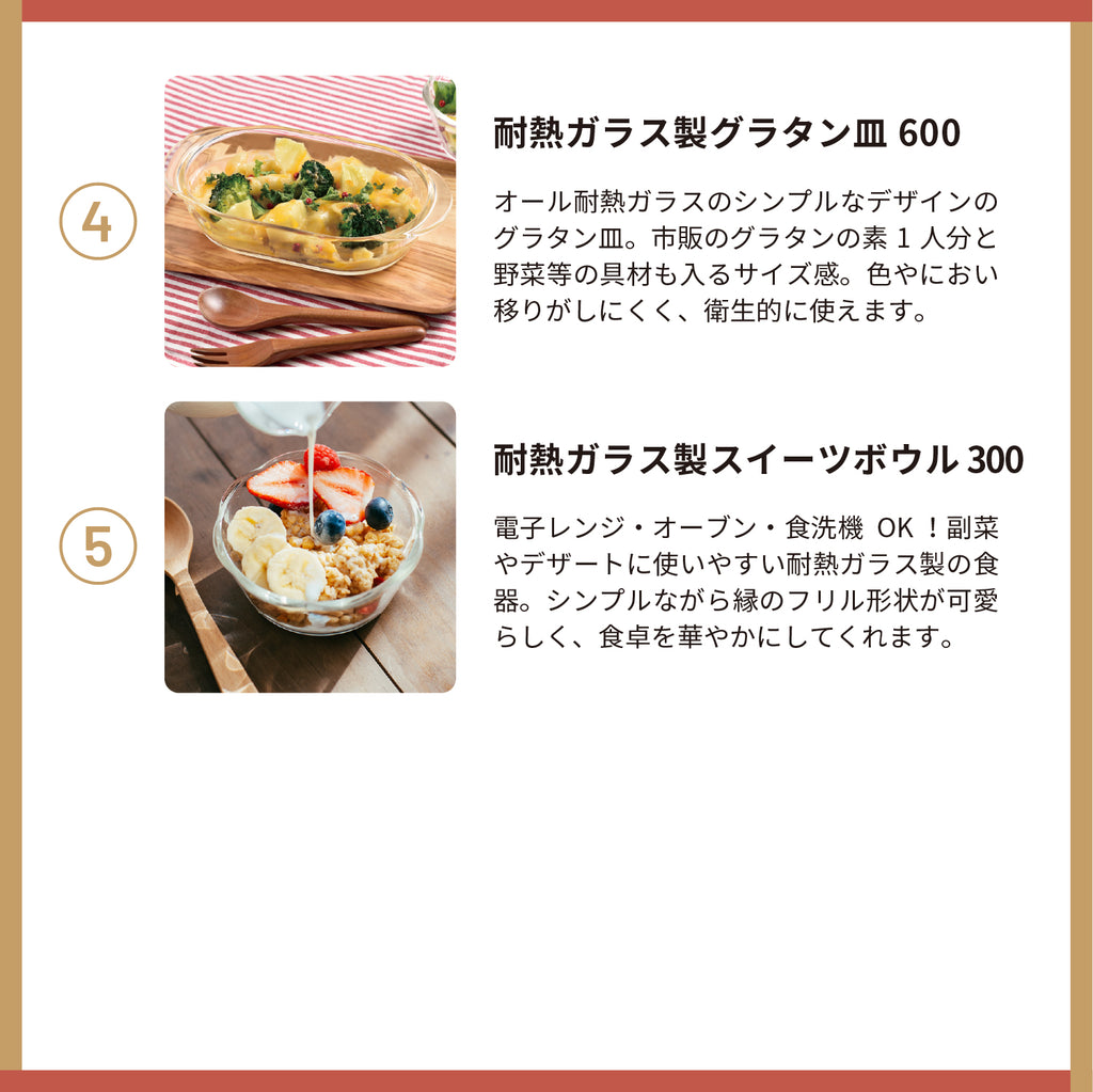 保存容器、グラタン皿、スイーツボイルは収納性も高いスタッキングタイプです。マルチに活躍する耐熱ガラスアイテムをご提案致します。