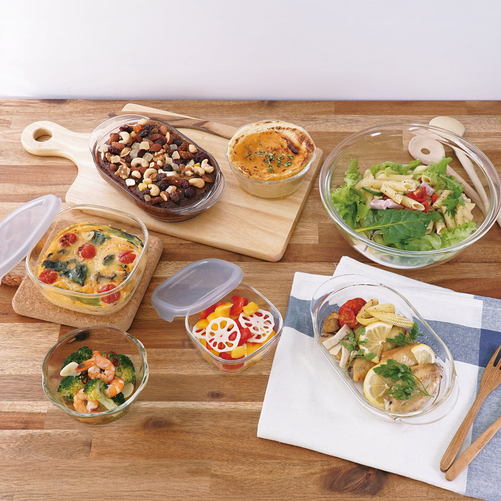 レンジ・オーブンで簡単調理ができ、食器としても使いやすい耐熱ガラスシリーズのバリエーションを取り揃えました。