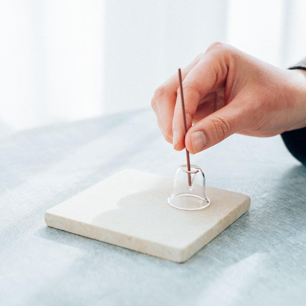 日本国内の職人の手作業で丁寧に作られたガラスのお香立て。
