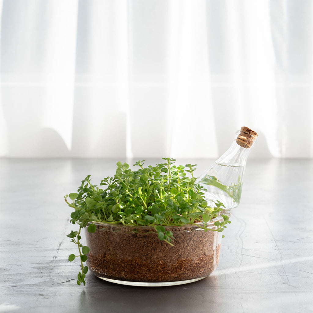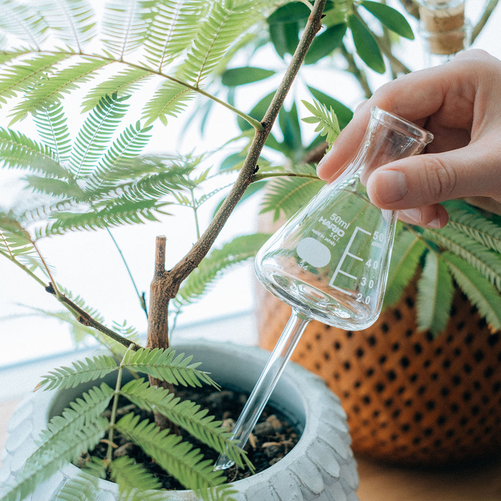 土に穴を開け、水やり器を挿すとプランターに給水できます。